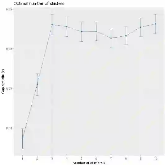 gap_clust <- clusGap(dataset, kmeans, 10, B = 500, verbose = interactive())