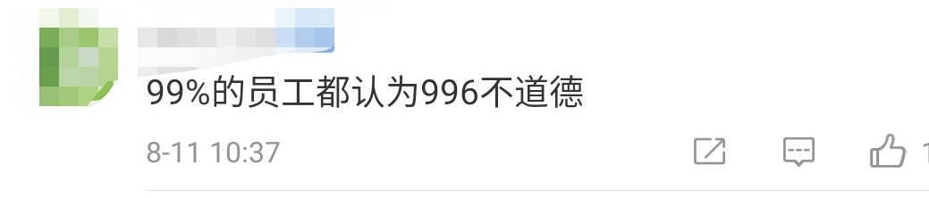 网友表示,这种样本数少的员工投票不作数啊,99%员工还认为996不道德呢。