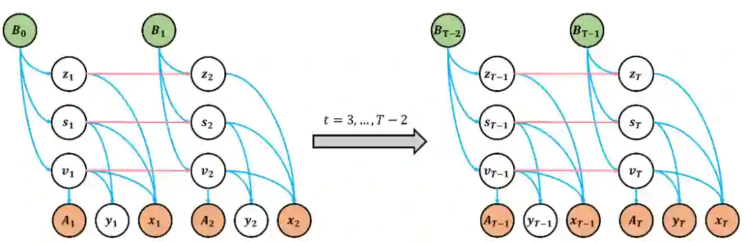 为了解决上述问题,本文对时间序列疾病预测建立了一个基于时序的因果隐马尔可夫模型(Causal-HMM),即针对现有的观测数据,包括每个时间步的图像数据