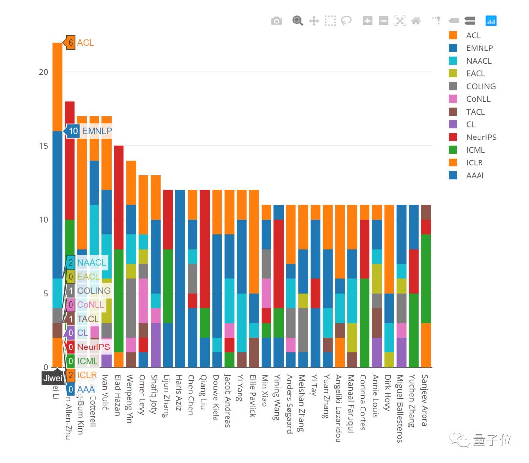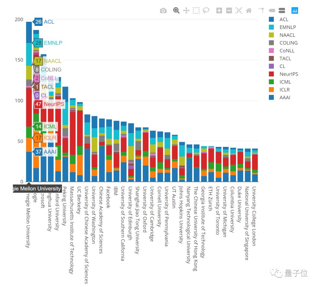 Marek Rei表示,统计信息包括12个顶会,分别是: