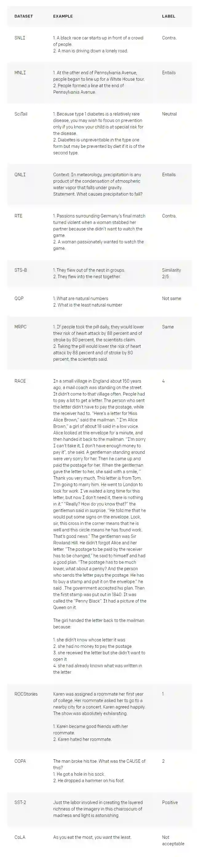 它也是一个大型模型(与之前的工作相比),因此使用了更多的计算和内存——我们使用了37层(12块)Transformer 架构,并且在最多可达 512 个 tokens 的序列上训练。并且大多数实验都是在 4 个和 8 个 GPU 的系统上进行的。该模型针对新任务进行 fine-tuning 的速度非常快,有助于减轻额外的资源需求。