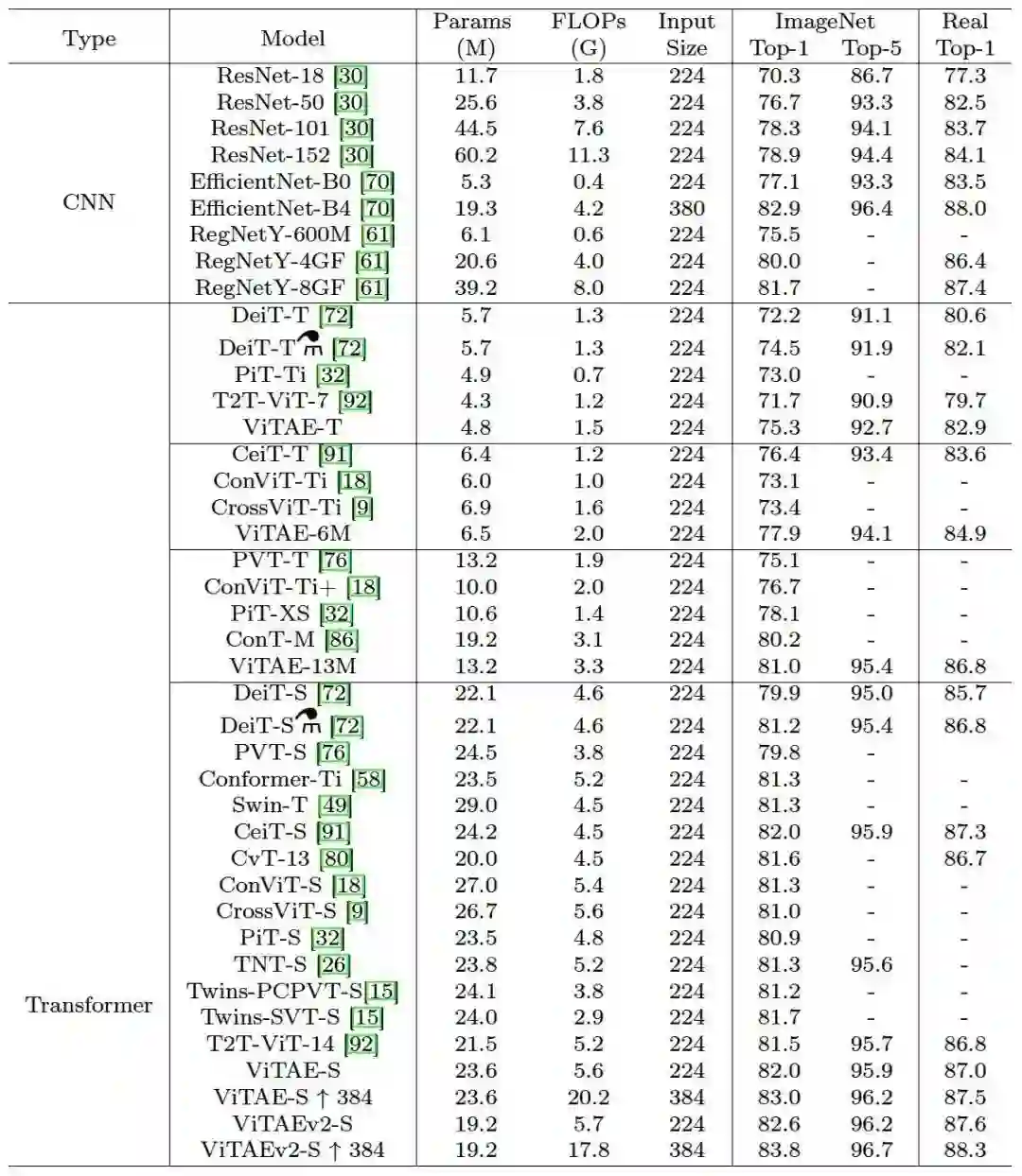 近期京东探索研究院联合悉尼大学提出了更大规模、更优效果、对各类视觉任务具有更好适应性的新型视觉主干网络ViTAEv2。其中,具有6亿参数的ViTAE-H模型在不依赖任何外源数据的情况下,在ImageNet Real数据集达到了91.2% 的分类准确度,在目前已知方法中排名世界第一。 >>加入极市CV技术交流群,走在计算机视觉的最前沿