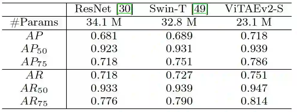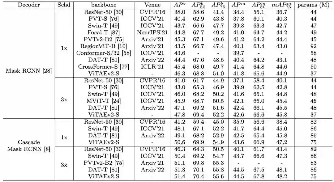[1] Zhang Q, Xu Y, Zhang J, et al. ViTAEv2: Vision Transformer Advanced by Exploring Inductive Bias for Image Recognition and Beyond. arXiv preprint arXiv: 2202.10108, 2021.