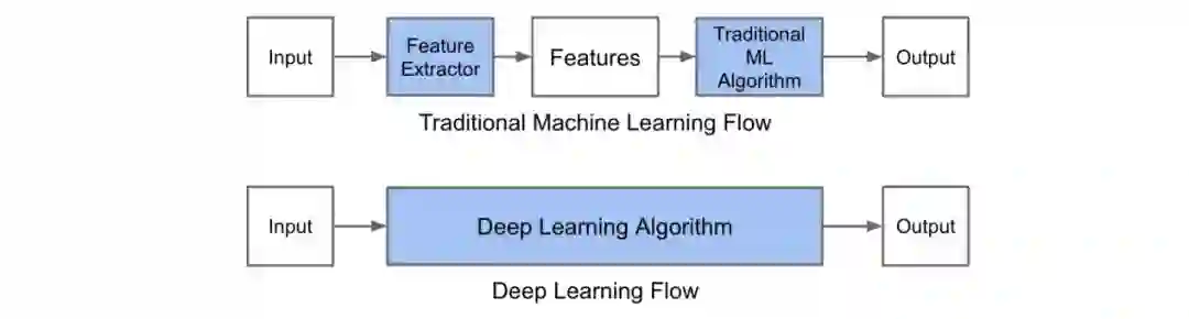 下图展示了特征提取(使用传统的计算机视觉技术)和端到端学习二者之间的差异: