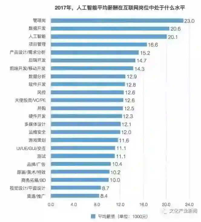 作为典型的技术驱动型行业,人工智能相关岗位的薪资水平、就业满意度都优于全国平均水平,同时该领域薪酬溢价明显,目前已逐渐成为整个互联网行业最多金的岗位。