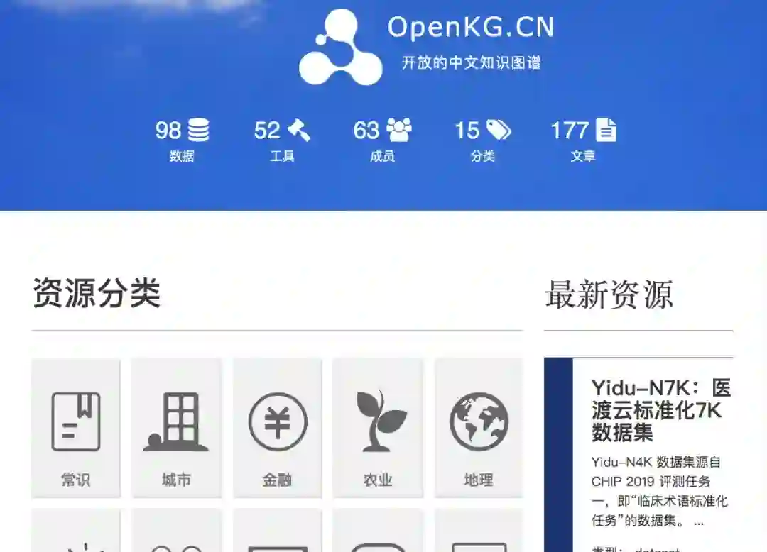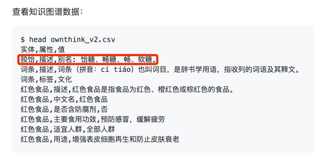 既然人工枚举同义词的能力有限,从哪些数据里可以找到现成的同义词呢?这里分为两个思路,首先是从现成的结构化数据里寻找,最简单的可以找现有的知识图谱数据,比如OpenKG (http://openkg.cn/) 、OwnThink (https://www.ownthink.com/) 里就可以找到不同领域下的开放知识图谱数据