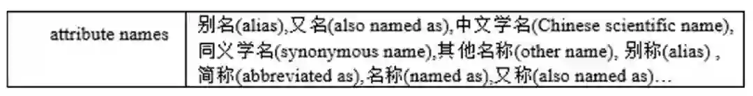 除此之外,另一种结构化数据稍微麻烦一些,在百度百科、维基百科页面中也很容易找到别名信息: