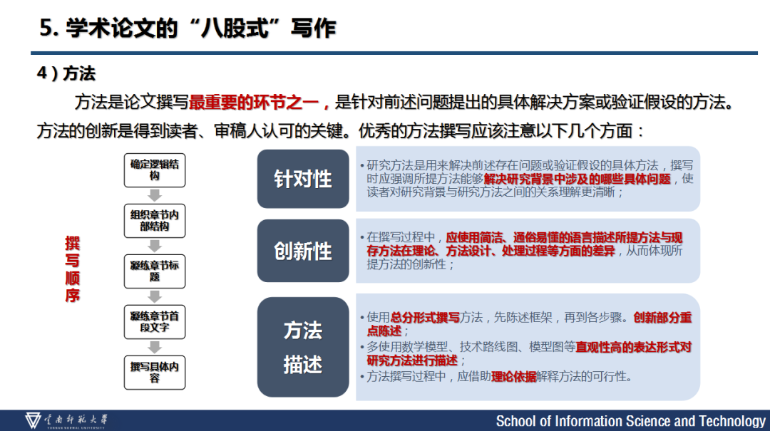 通过不断的钻研,我们会产出一系列成果,这时候,需要记录阶段性的成果。学术论文是科研阶段性成果展示的载体。为了提升学术论文的可读性,使读者可以更好更快地理解其创新与贡献,学术论文的文章结构和撰写要求也形成了一些固定模式——学术论文的“八股式”写作。