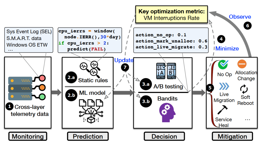 NARYA 首先通过模型来预测故障的发生,然后对即将发生故障的组件自适应地采取缓解措施,使整个故障处理流程对用户透明并避免用户受到负面影响。