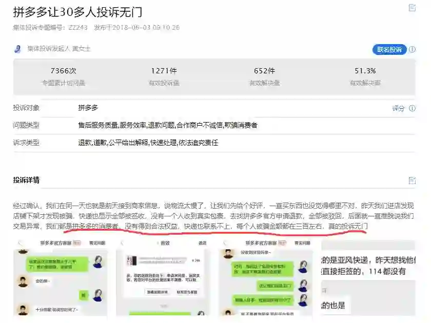 能够同时把个人消费者和合作商家都怼的四处投诉维权,这恐怕是拼多多当下主要面临的问题。这表明,拼多多“社交+电商”的模式,面临着大的考验。