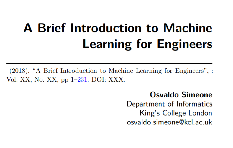 人工智能技术已经成为当前技术变革的主要推动力之一,从计算机科学到工程学等许多科学技术领域都在竭尽全力想用自动化的方法创造更大的价值。要想做到这一点,工程师当然必须要对当前最具潜力的机器学习方法有一个大致了解。伦敦国王学院信息学习教授 Osvaldo Simeone 公开发布了长达 237 页的最新专著,为工程师提供了全面细致的机器学习入门介绍。
