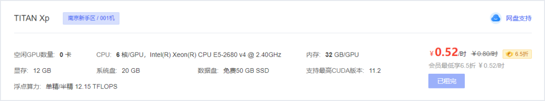 TITAN Xp 是上上代桌面旗舰,AutoDL 将它定位为低门槛调试卡提供给用户,同学们可以在 Titan Xp 上调试好后,通过实例迁移功能将代码迁移至性能更高的卡上加速。