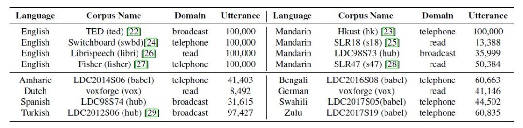 这篇论文的第一作者 Xinjian Li 目前在卡耐基梅隆大学语言技术研究所(LTI)攻读博士学位。这篇文章的主要面向的是低资源语音识别问题。使用多语言共享声学模型已有的研究方法就是先在一些语料上面进行预训练,然后再针对目标语言精调。但是这篇论文的作者认为以往的这种 pre-train+fine-tune 的思路忽视了训练集上各种语料独有的特点和语料之间的相似性。论文中所提出的方法主要是可以利用语料相关性的采样策略。将输入的语音特征和语料 embedding 联合起来作为整个模型的输入,输入具有 4 层双向 LSTM 的声学模型结构进行训练。在训练的不同阶段,使用不同的 temperature 来控制在不同语料上采样的概率分布。实验结果证明,这种采样策略训练得到的声学模型,在音素错误率(PER)上与其他的对比实验相比,有明显的性能提升,而且还得到了与语料相似性以及域相关性有关的有趣结果。需要注意的是,本文做到了声学模型这一步,没有后续的解码过程。