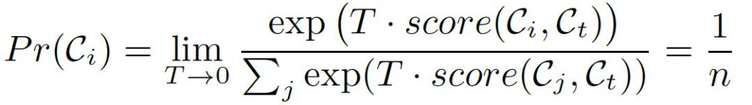 这里的 T 就是在训练阶段用来标准化采样分布的变量 temperature。作者认为不同的 T 值可以构造不同的采样条件。例如,T 越小,采样过程在不同的语料上差别就越小。例如,当 T=0 的时候,就相当于均匀采样,已经与语料相似度无关了: