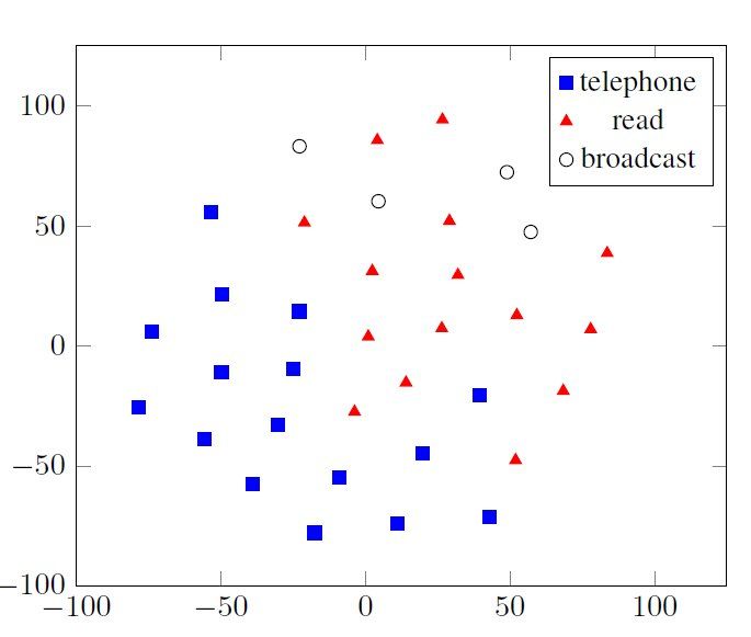 图 6. 语料 embedding 的领域分布(每个语料 embedding 都被使用 t-SNE 将维度降到了 2)