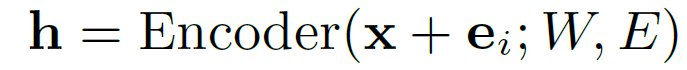 这里的目标就是要为每种语料 C_i 计算出能够对其语料信息能够进行编码的语料向量 e_i。这些语料向量是可以使用标准的多模态模型进行联合训练的。首先,为所有的语料初始化 embedding 矩阵 E,这个矩阵的每一行 e_i 对应的是语料 C_i。接下来,在训练的过程中,e_i 可以作为输入特征的一个偏置,如下所示: