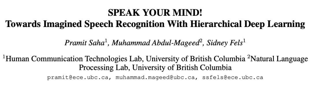 2. SPEAK YOUR MIND! Towards Imagined Speech Recognition With Hierarchical Deep Learning (说你所想!使用分级深度学习进行想象语音识别)