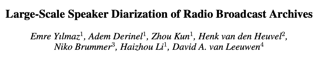 5. Large-Scale Speaker Diarization of Radio Broadcast Archives (无线电广播存档中的大规模说话人分割)