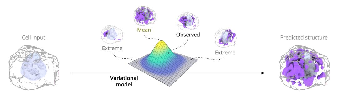 而概率模型在完成训练和推理过程后,能够输出一个 3D 的细胞工作模型,动态显示不同条件下细胞各组成部分的分布和动态。理论上,这个模型可以用于研究那些组织机理尚不清晰的细胞,也有助于拓展人体细胞的形态学边界。