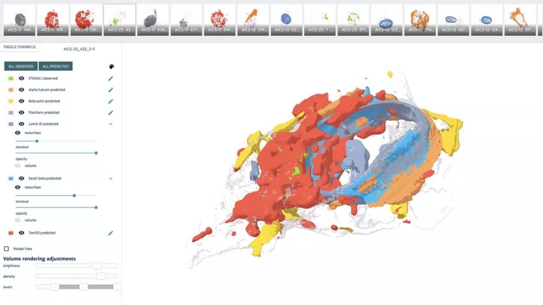 由于训练方式基本相同,这两个模型工具被合称为 Allen Integrated Cell,并用同一套工具来渲染和展示 3D 细胞模型。