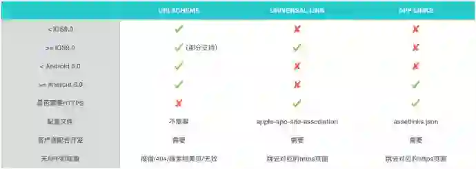 URI Scheme: 根据图片可以看到URI Scheme的兼容性是最高,在使用的过程中,会发现有很多限制: