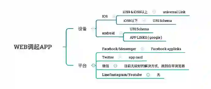 无论哪一种方式目前都没有解决几个问题: * 如果设备上没有安装这个app的时候,安装完毕后,无法保留住此时用户停留的上下文。 * 因为web没有办法监听到APP是否安装,所以都需要通过一些手段来兼容调起app或者是去下载页