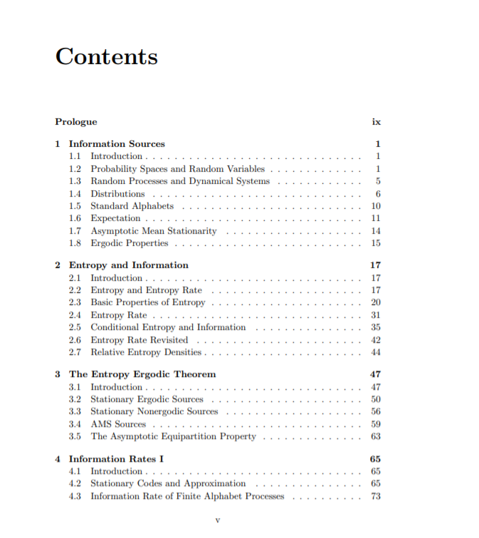 本书致力于概率信息测度理论及其在信息源和噪声信道编码定理中的应用。最终的目标是全面发展香农的通信数学理论,但大部分篇幅都用于证明香农编码定理所需的工具和方法。这些工具形成了遍历理论和信息论的共同领域,并包含了随机变量、随机过程和动力系统中的信息的几个定量概念。例如熵、互信息、条件熵、条件信息和相对熵(鉴别、Kullback-Leibler信息),以及这些量的极限标准化版本,如熵率和信息率。在考虑多个随机对象时,除了考虑信息之外,我们还会考虑随机对象之间的距离或变形,即一个随机对象被另一个随机对象表示的准确性。书的大部分与这些量的性质有关,特别是平均信息和扭曲的长期渐近行为,其中两个样本平均数和概率平均数是有兴趣的。