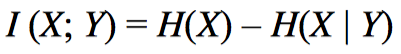 互信息也是说两个事件/随机变量之间的事儿。X与Y的互信息就是X的自信息(熵)减去【已知X的情况下,Y的条件熵】。直白的讲就是知道了X的值以后,Y的值的不确定性会降低多少。也就是说X的值会透露多少关于Y的信息量。
