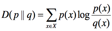 想象一下,虽然前文的“火山爆发”与“熔浆融化豪宅”这两个事件互推的条件熵很小,但是这两个事件的含义却差别很大,因此它们的相对熵计算出来也会比较大。但是“明天火山爆发”与“明天下午两点火山喷发”的相对熵就会很小,因为它们几乎是同一个事件。