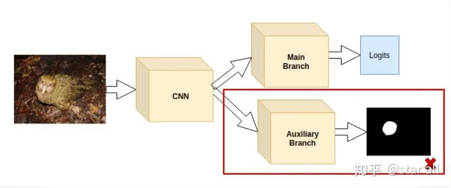 假如说你的模型可以自己输出鸟类头部的位置,虽然这个鸟类头部的位置信息是你不需要的,但是输出这样的信息代表着你的网络能够locate鸟类头部的位置,也就给鸟类的头部更加多的attention,也就相当于给把鸟类头部这个先验信息给加上去了。