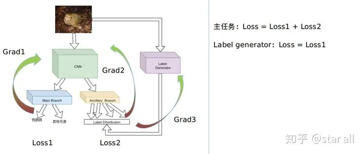 这个framework采用基于maxl[2]的方案(https://github.com/lorenmt/maxl),辅助任务的数据和label不是由人为手工划分,而是由一个label generator来产生,label generator的优化目标是让主网络在主任务的task上的loss降低,主网络的目标是在主任务和辅助任务上的loss同时降低。
