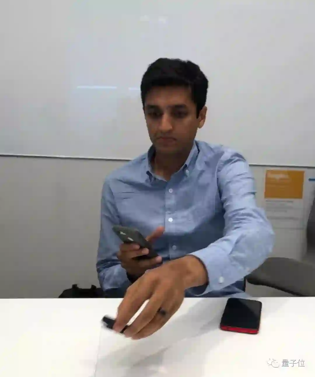 采访当天,我们展示了一款搜狗专门为速记转写打造的AI硬件产品,这引起Sagar极大兴趣。