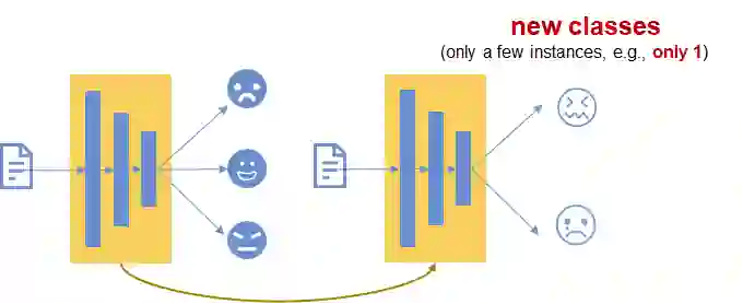 All in all, the problem is how to train a model on a dataset that have many instances for each class and how to adapt this model to a new dataset which only has a few instances for each class. The classes in the new dataset are unseen in the first one.