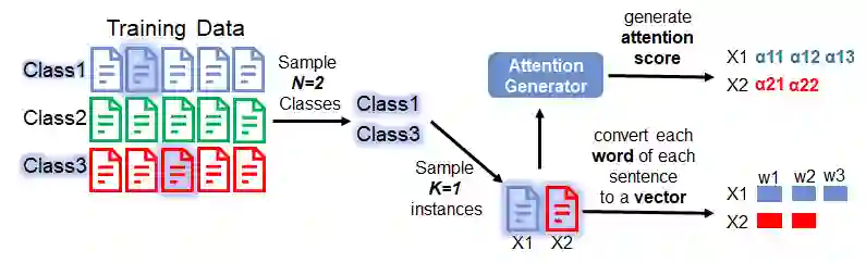 In this step, we take as input the sampled instances of an Attention Generator. The output of this generator is the attention scores of words. The score indicates the importance of each word in an instance.