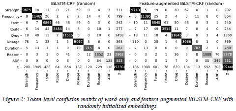 论文名称:GNTeam at 2018 n2c2: Feature-augmented BiLSTM-CRF for drug-related entity recognition in hospital discharge summaries