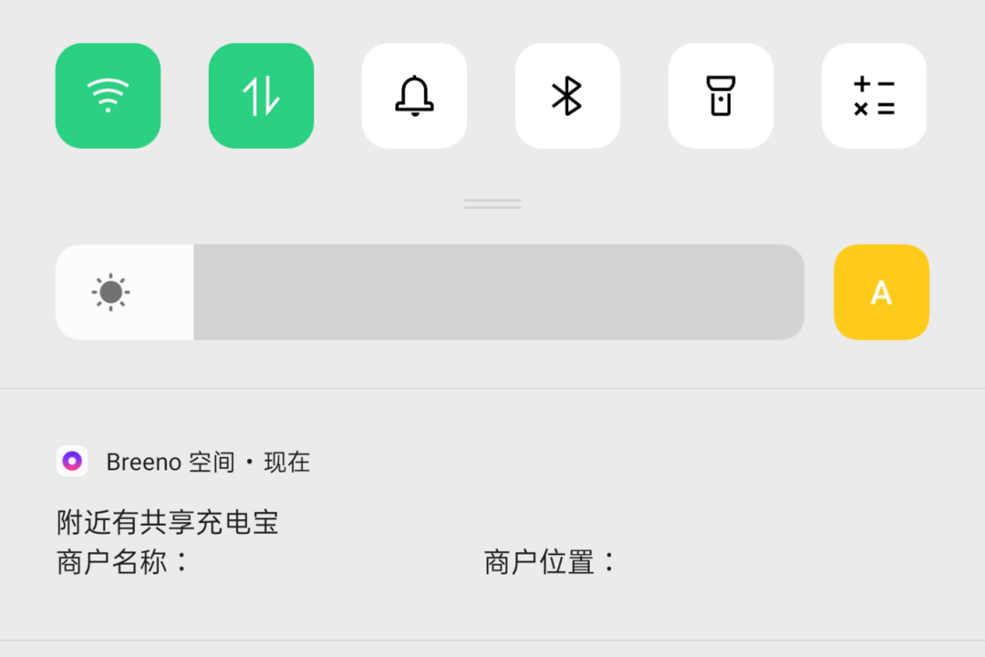 在我之前测试上班途中手机不充电期间,每当手机电量特别低的时候,手机内置的智能助理Breeno都会自动根据我的位置,告诉我附近哪个商铺有可用的共享移动电源,和这个商铺的具体位置。