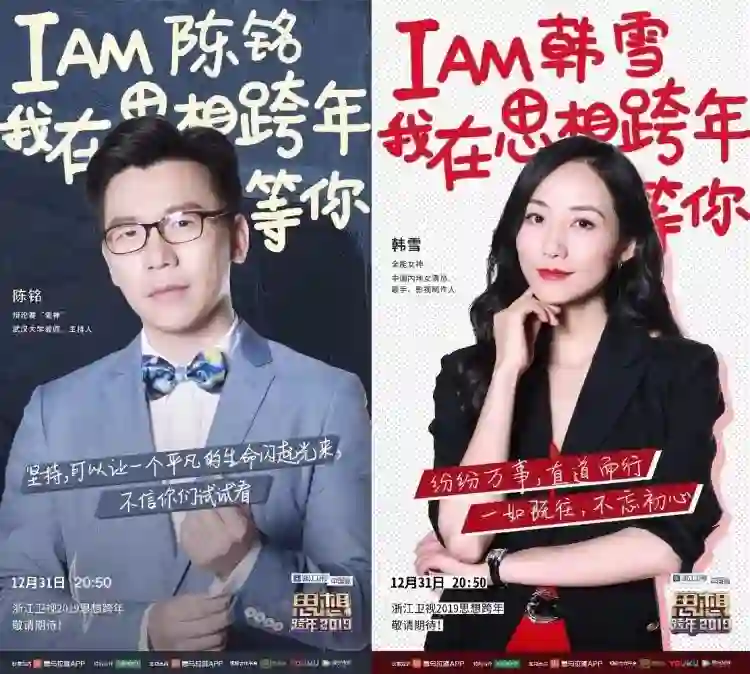 今年,《浙江卫视2019思想跨年》的嘉宾同样兼顾了知识性和娱乐性,除了去年来过的财经作家吴晓波、《奇葩说》团队导师马东、阿里云创始人王坚博士,还包括了中国女排总教练郎平,四位《奇葩说》的BBking马薇薇、黄执中、肖骁、陈铭,Nine Percent 成员尤长靖,《我就是演员》冠军演员韩雪等等。