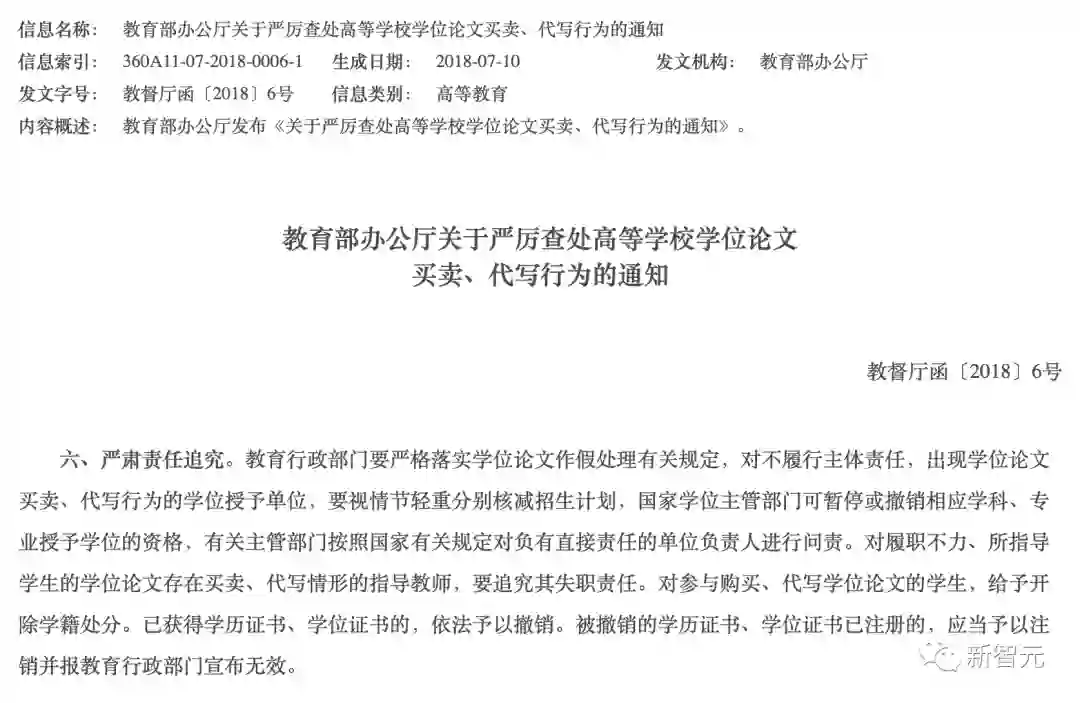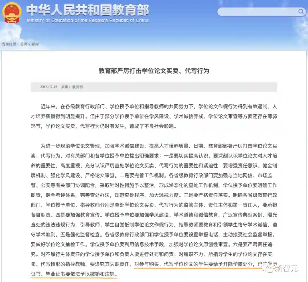 可能是怕通知「太长不看」,教育部又在2018年7月发文特地强调了要「严厉打击学位论文买卖、代写行为」。
