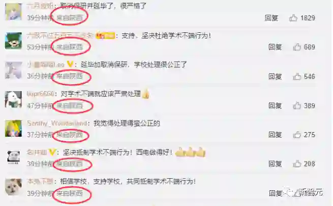 在西安电子科技大学这条官方微博下,第一时间冲出来叫好点赞的ID,其IP属地全部显示为陕西。