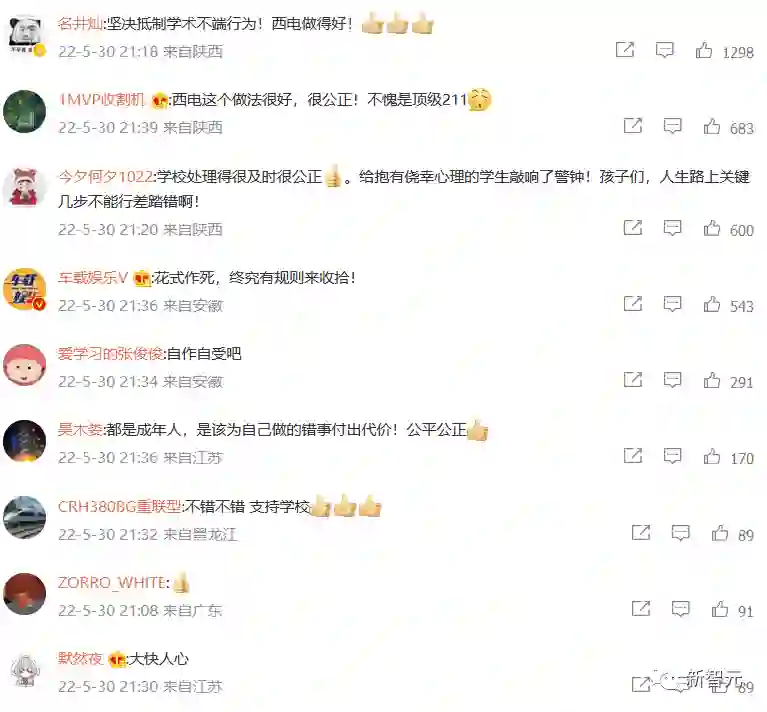 公众纷纷表示:西电真行,西电能处。搁其他学校该开除的事,在西电这里的处罚不大于其他学校的一次期末考作弊。