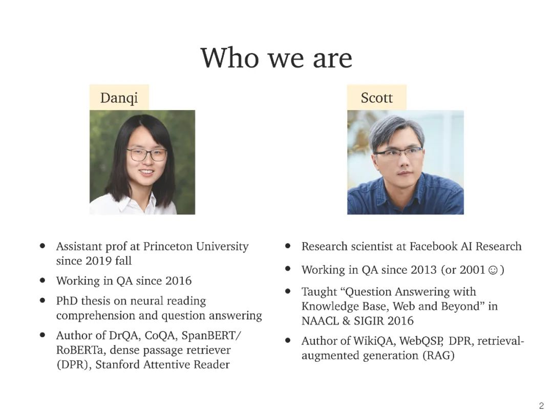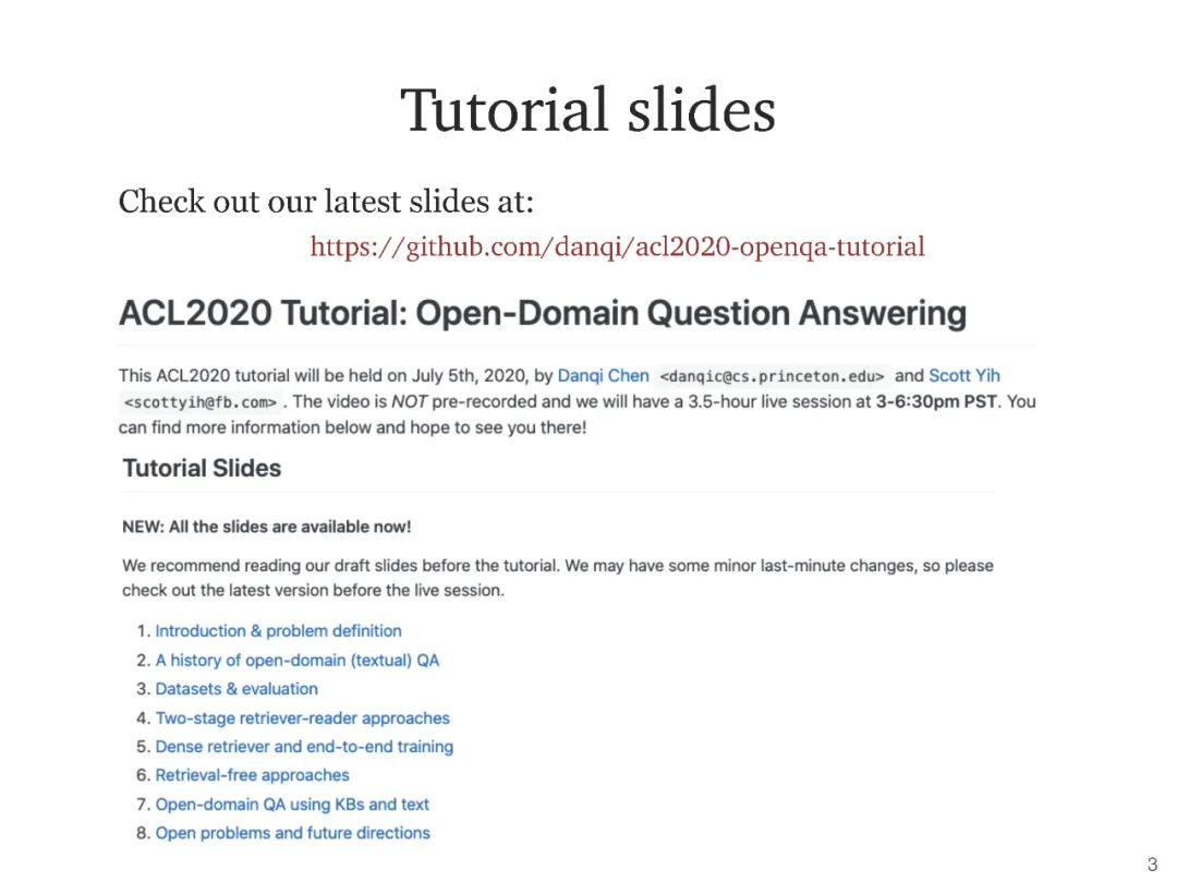 普林斯顿大学陈丹琦和 Facebook的Danqi Chen在ACL2020的tutorial-开放域问答