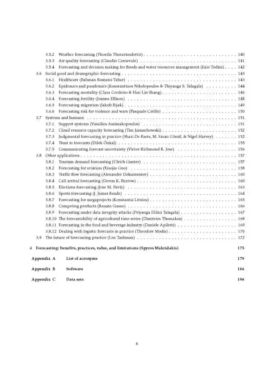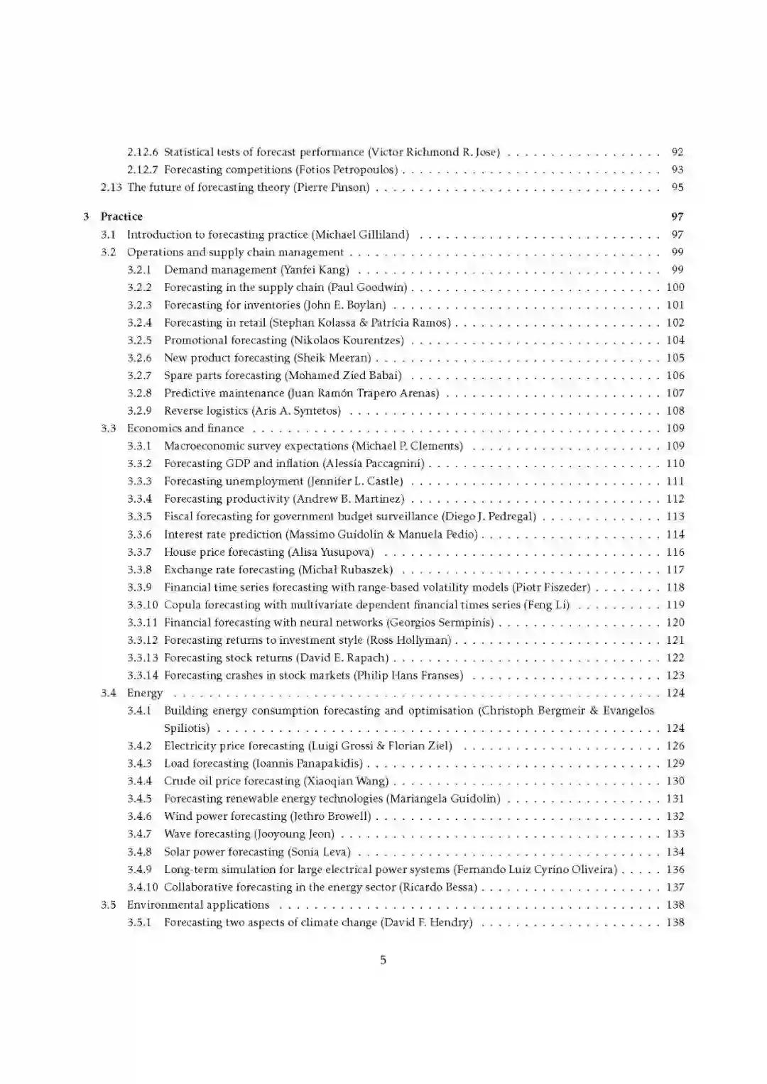 自从早期人类通过观察天空来判断天气是否适合狩猎以来,天气预报已经取得了长足的进步,甚至自从猎人能够得到诸如“气温高达40度,有可能下雨”这样的预报以来。现在,猎人只要看一看智能手机,就能立即得到多个地点每小时的气温预报和降雨概率,以及显示未来几个小时天气预报模式的地图视频。管理人员、政府官员、投资者和其他决策者可以对日益复杂的情况作出定制的预测,为许多不同类型的重要决策提供信息。自De Gooijer和Hyndman(2006)发表优秀的综述文章以来的15年里,预测领域在理论和实践方面都取得了惊人的增长。因此,这篇综述既及时又广泛,既有高度理论性又非常实用。