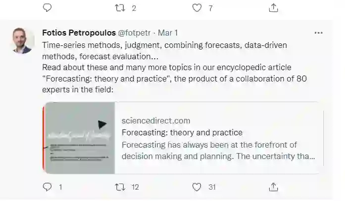 后台回复“FTP” 就可以获取《重磅!80+位学者发布272页pdf《预测: 理论与实践》论文,百科全书式概述预测领域体系方法与实践》专知下载链接