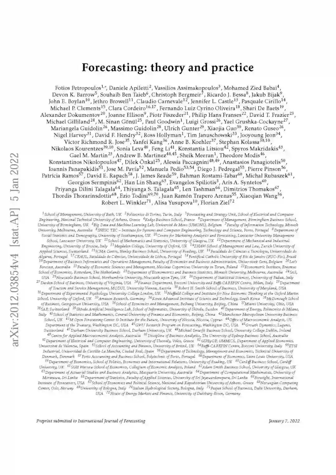简而言之,这是预测领域的一个激动人心的时代,所有新的理论发展和预测在实践中的应用。预测是如此普遍,以至于不可能在一篇文章中涵盖所有这些发展。本文设法涵盖了相当多的内容,而且种类繁多。对每种方法进行简短的介绍,由对理论主题或实践领域“接近实际”的专家来做,可以很好地提供预测理论和实践的最新状况。