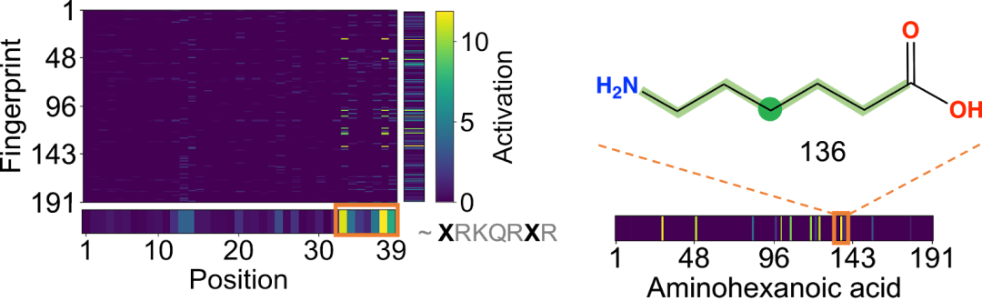 图 3.(左)正梯度活化热图,(右)用于功能肽序列的活化后化合物亚结构