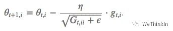 与SGD的核心区别在于计算更新步长时, 增加了分母: 梯度平方累积和的平方根。 此项能够累积各个参数 的历史梯度平方, 频繁更新的梯度, 则累积的分母逐渐偏大, 那么更新的步长相对就会变小, 而稀疏的梯度, 则导致累积的分母项中对应值比较小, 那么更新的步长则相对比较大。