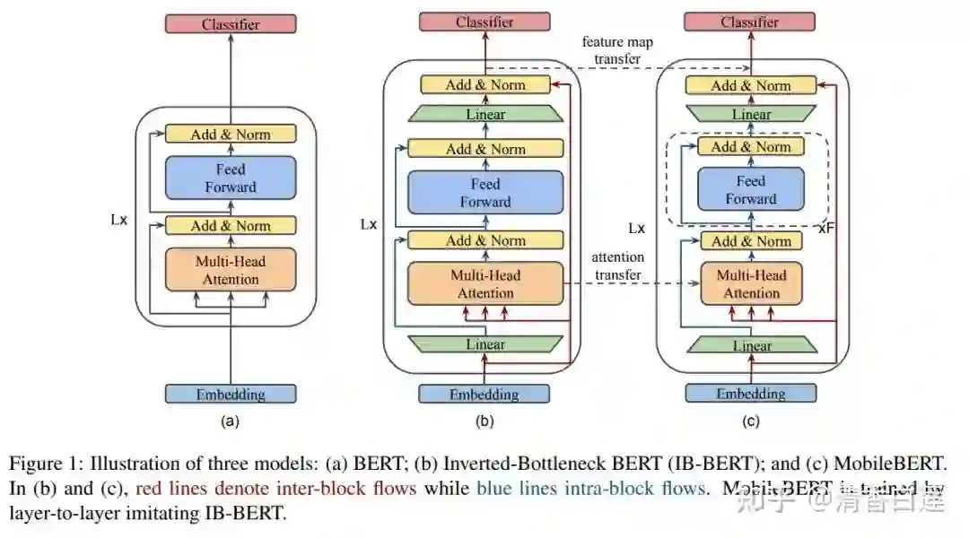 Zhiqing Sun, Hongkun Yu, Xiaodan Song, Renjie Liu, Yiming Yang, Denny Zhou. MobileBERT: a Compact Task-Agnostic BERT for Resource-Limited Devices, 2020.