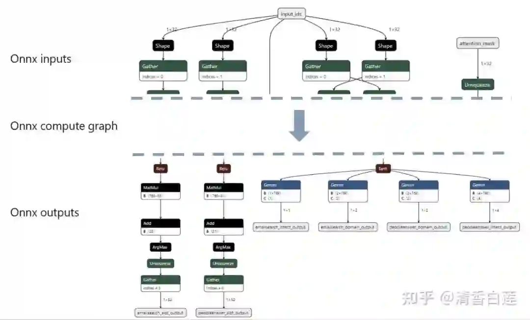 神经网络是一个计算流图,原始的执行流程还可以还很多优化,比如算子的合并,运行时不需要部分的裁剪等。常见的针对神经网络计算流图优化的引擎主要有 ONNX Runtime 与 TVM,其中 ONNX Runtime 使用最广。