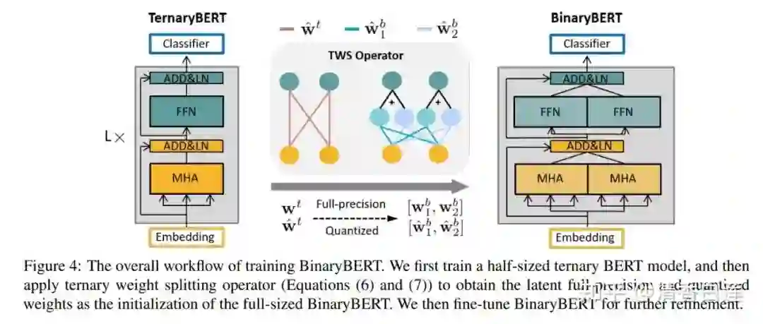 有点类似于用两个 Binary 数据来表示一个 Ternary 数据,所以 BinaryBERT 的 size 也是 ternary BERT 的两倍。
