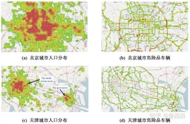 如上图所示,其实无论是在北京还是天津,危险品的运输的目的地往往是诸如加油站、餐馆以及危险品生产地等。而在危险品到达目的地的过程中,很可能需要途经城市中人群密度较大的区域。